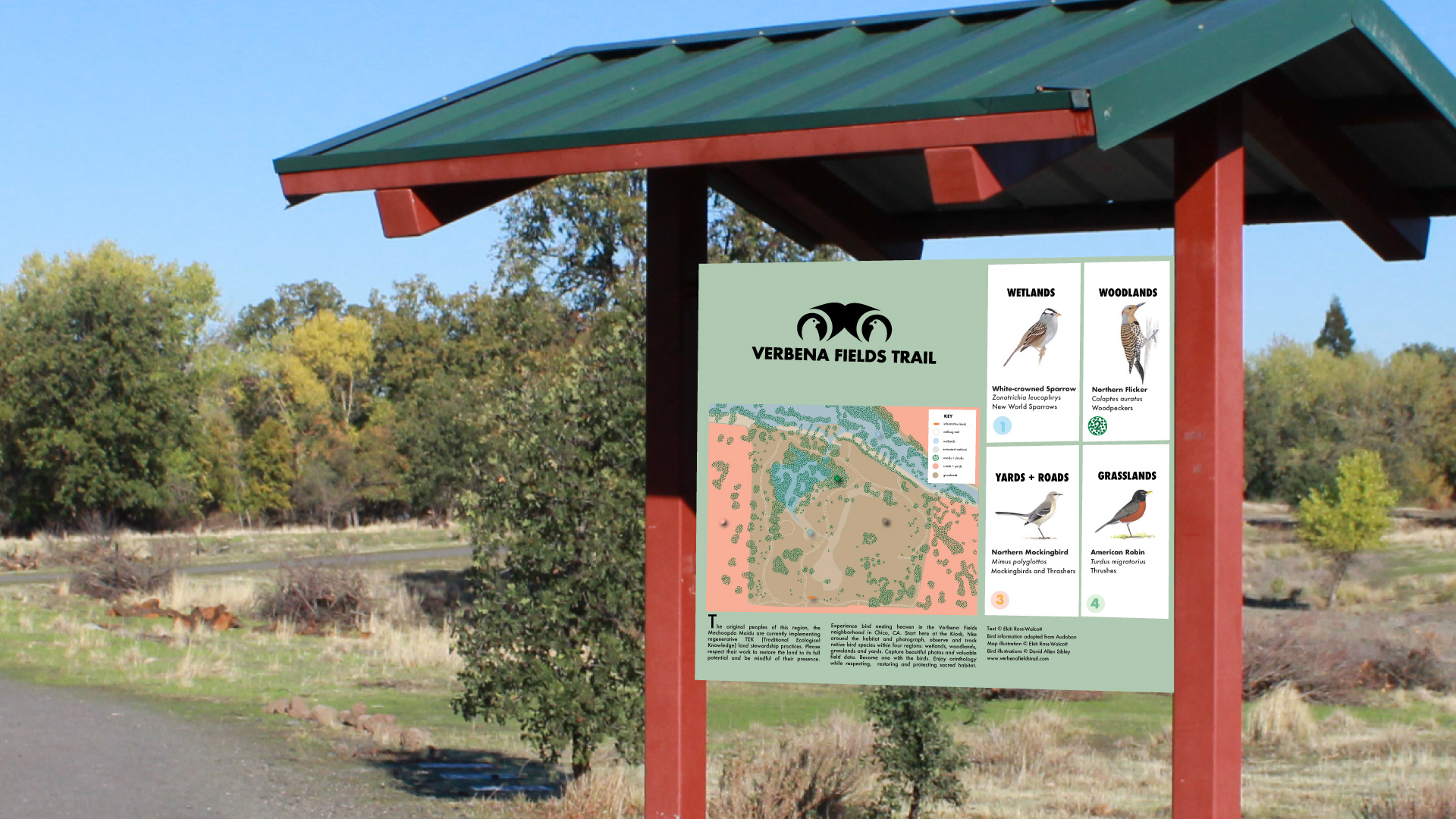 Create a prototype for photo capturing binoculars, a current trail booklet for Verbena Fields in Chico, CA, and 3D signage for this pivotal flood plain and natural environmental field. Inspire the youth, adolescents, and adults to get involved with nature and begin to engage in stewarding and restoring the beautiful environment we need to survive and feel joy.